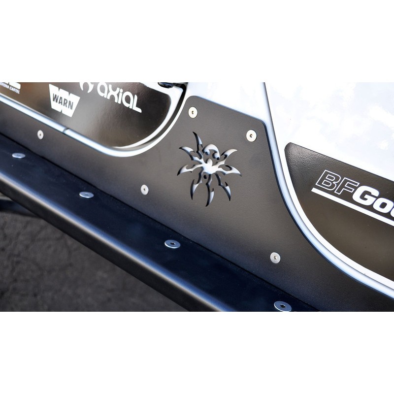 pour JKU 4 portes 2007 a 2018 plaque 3/16 eme , protege le bas de caisse et permet d'utilser un cric hi-lift. acier inoxydable